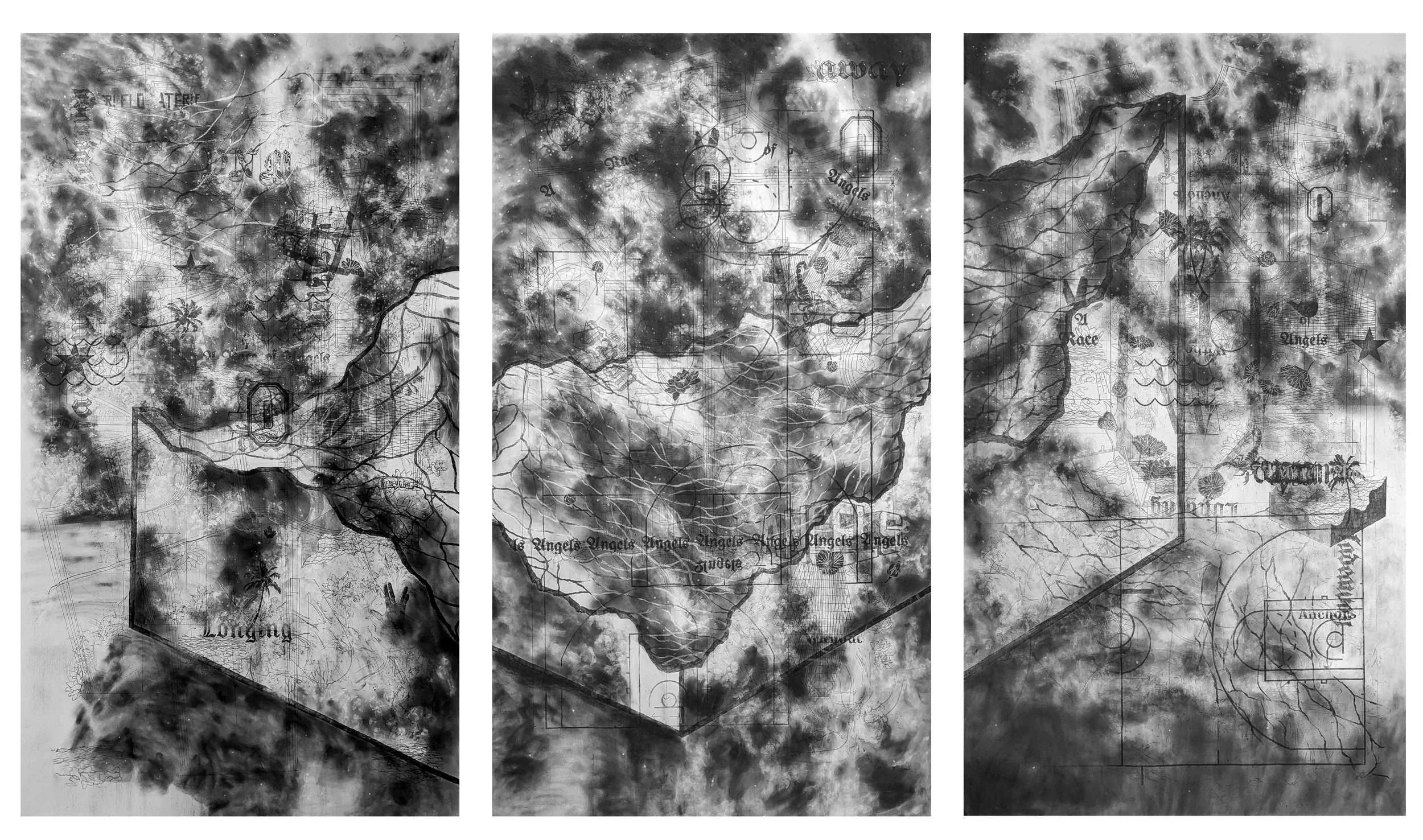 Carbon Copy: Ghosts & Angels, 2022 Charcoal and graphite transfer on paper 90 x 120 in.