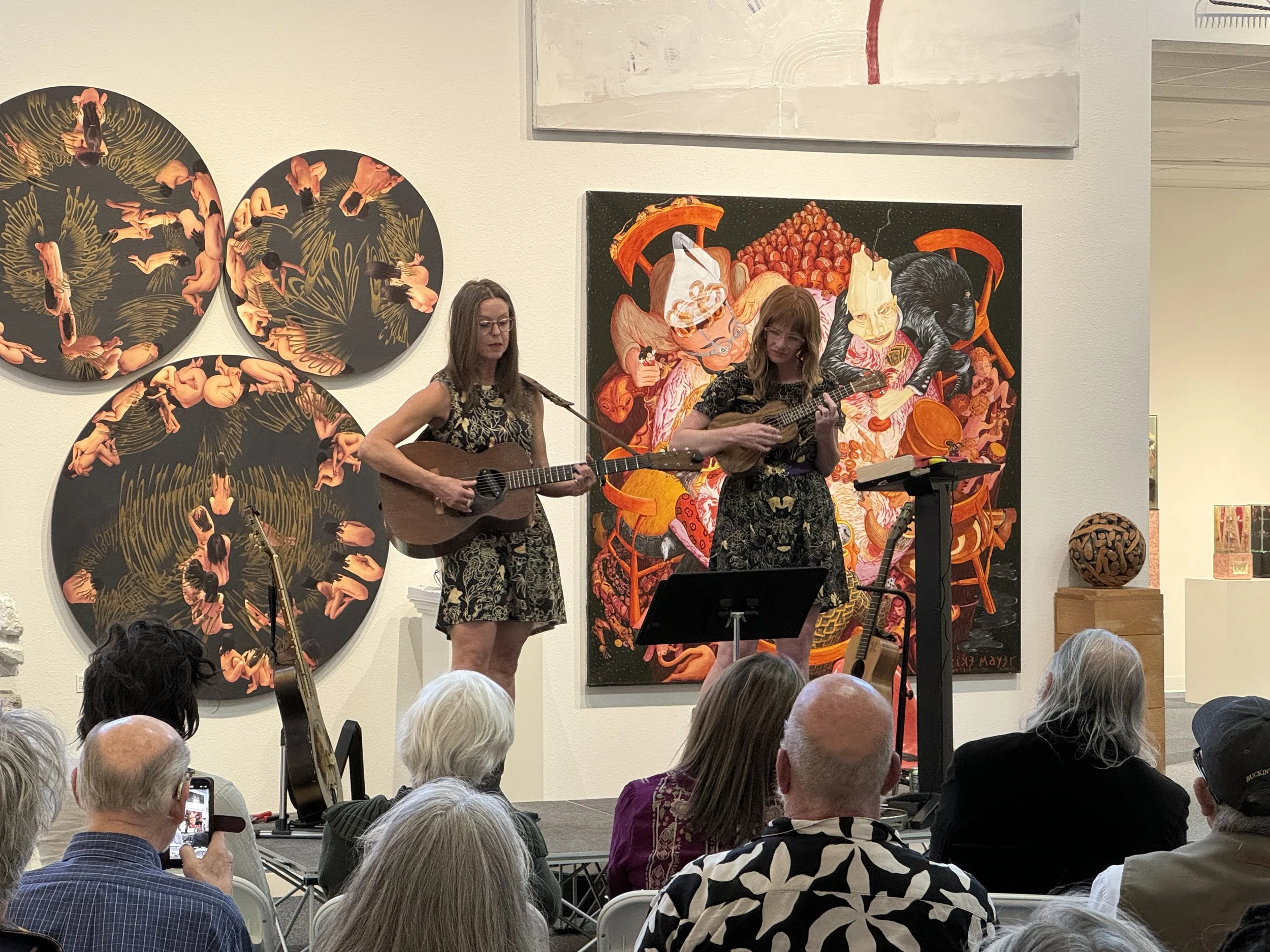 Folk duo Butterfly Cult featuring Jennifer Sirey (RAiR 2024-25), left, and Tammy Zibners performed at the Anderson Museum on March 16. They performed songs they had written, and shared the bill with another folk duo, Wolverton of Magdalena, NM. After the performance Jennifer gave a gallery talk in the North Gallery, where her exhibition Wiggly & Orderly was on display.