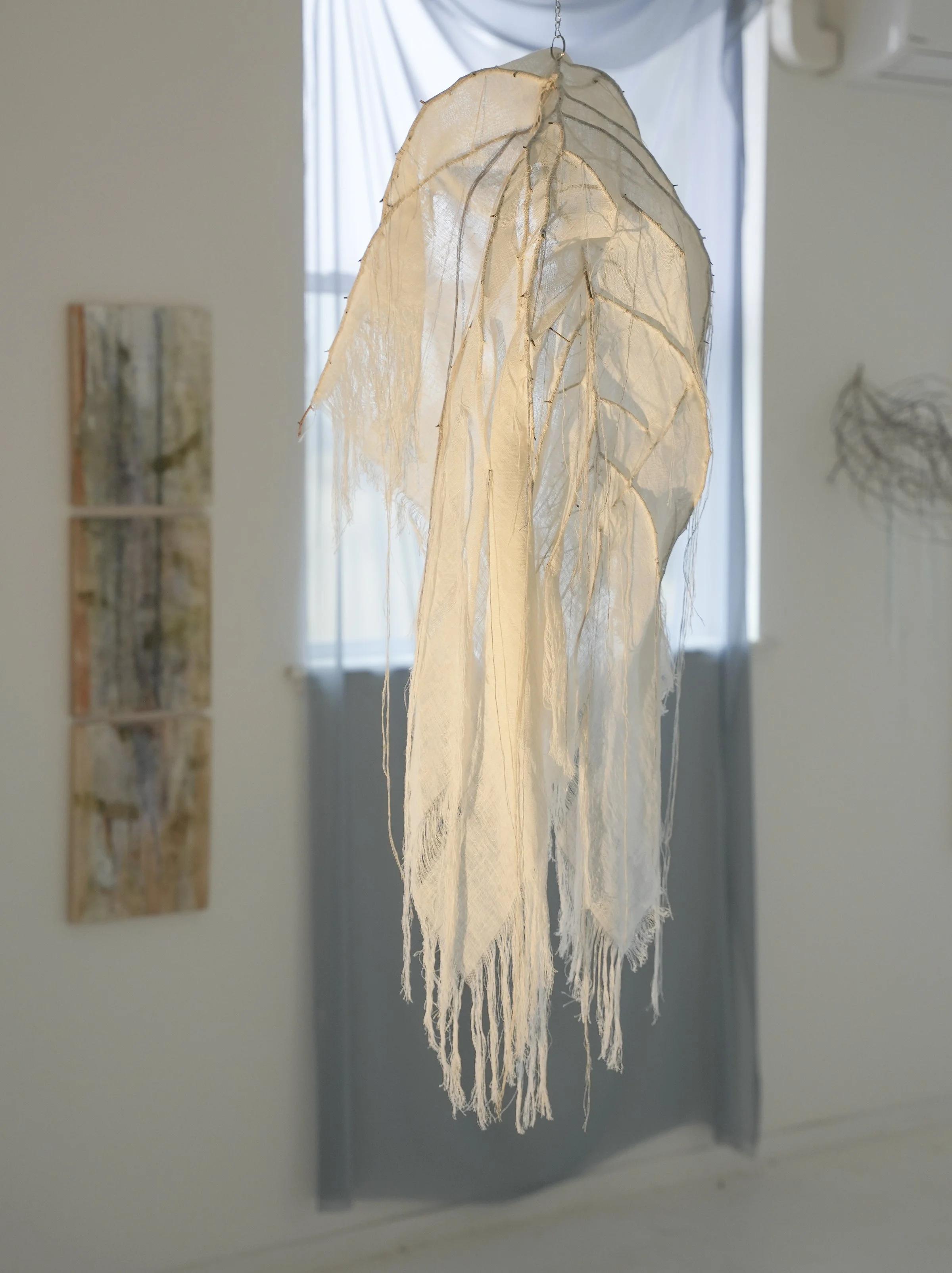 A new chapter in my art practice began. Like a human being, a work of art needs to have three elements: Skeleton, skin and pulse. I used wood for the skeleton. Fabric became the skin. Juxtaposing different stitches and colors gave me the pulse. Used materials hold energy of their past experiences, unleashing that energy causes pain but that's a small price to pay when you see the effect. In the past I would get compliments, now the viewers thank me wholeheartedly as if they have received something valuable.