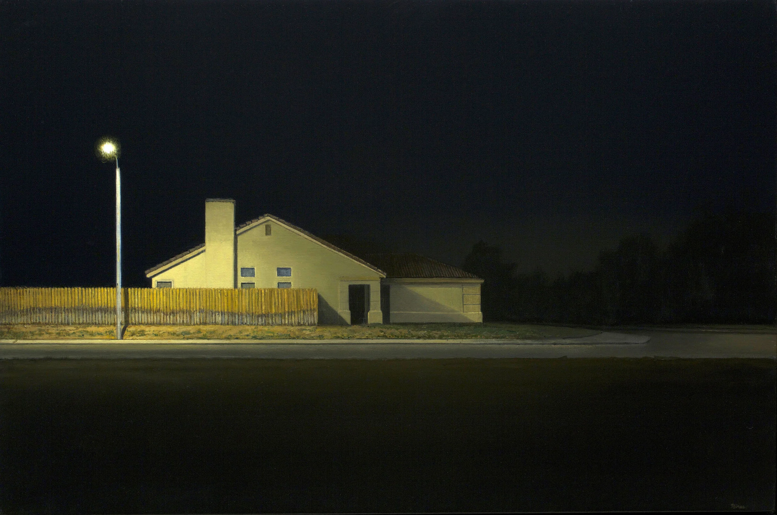 My work is a direct response to engagements with scenes or objects I encounter in my daily life. These responses are determined by memories, feelings, ideas, and longings that are part of my personality and which have informed my works view since earliest childhood. My paintings are an attempt to realize and communicate the significance of these nuanced responses to others. To this end, I am always actively in search for those moods and ideas that such scenes and things evoke. My night paintings seem to me to be the most poignant expression of my artistic goals. At night, the vast distances of the stars become obvious and the far darkened horizon of the landscape melds earth and cosmos together. In this expanded world, I explore outposts of human habitability. Mystery and loneliness are the themes that unite all of my night work, and they are palpable in the infinity that darkness suggests.